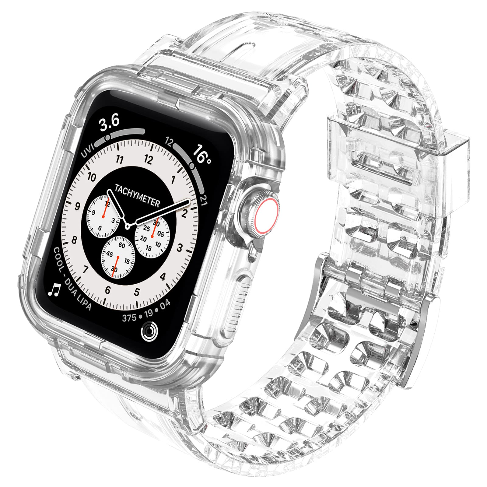 AmBand Rugged Case with TPU Strap for Apple Watch 9/8/7 45mm M1 Sport Series Men Clear | Military Protective AmBand Bumper for Apple Watch SE2/SE/6/5/4/3 44mm/42mm M1 Sport Series Men Clear | Tough AmBand Case with TPU Strap Compatible with Apple Watch 9/